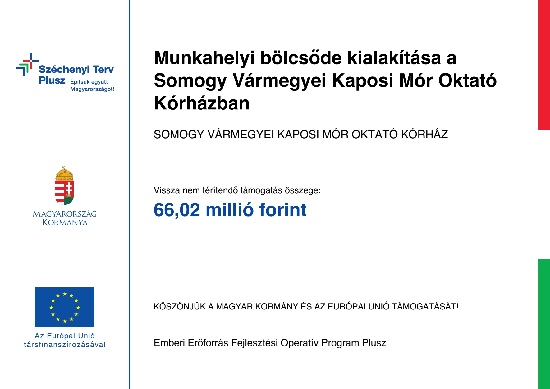 Projekt címe: Munkahelyi bölcsőde kialakítása a Somogy Vármegyei Kaposi Mór Oktató Kórházban
